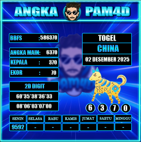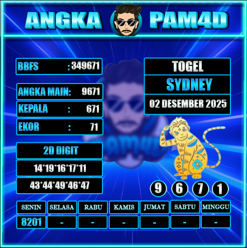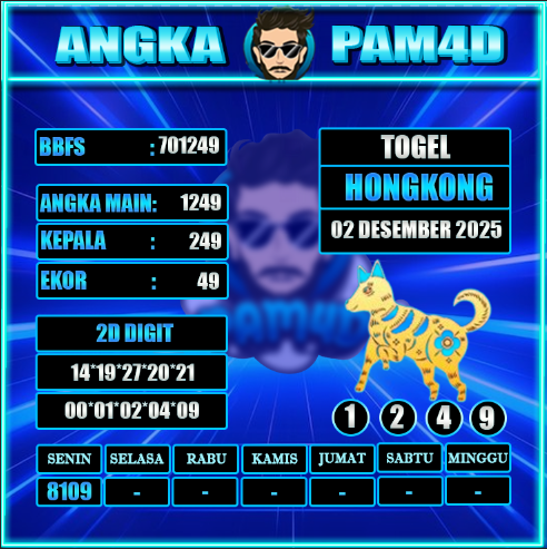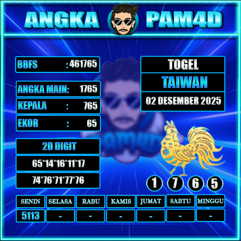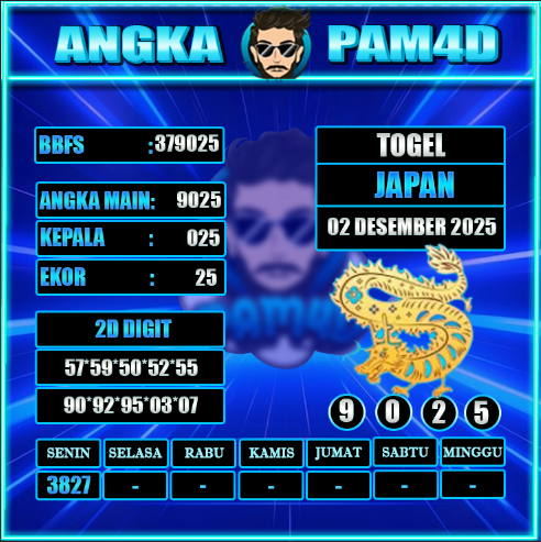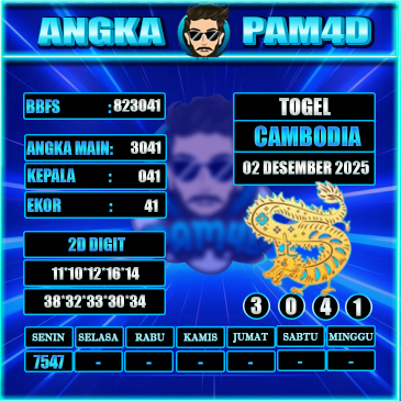 Prediksi togel PAM4D hari ini tanggal 02/12/2025 hadir untuk membantu pemain mendapatkan angka rekomendasi yang lebih akurat dan terarah. Setiap prediksi disusun berdasarkan pola data sebelumnya, analisa peluang, serta kombinasi angka yang sedang naik tren. Dengan pembaruan rutin setiap hari, pengguna bisa mendapatkan angka main, colok bebas, hingga kombinasi terbaik untuk berbagai pasaran populer.