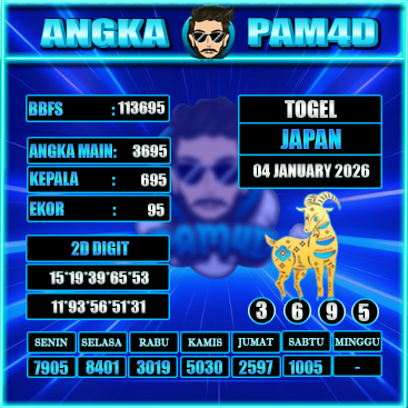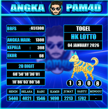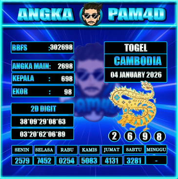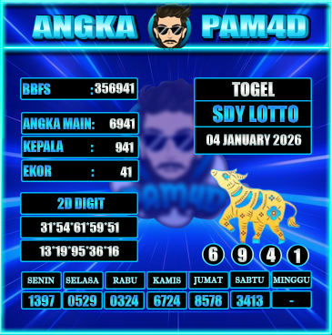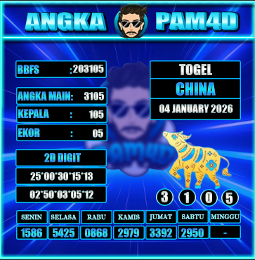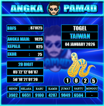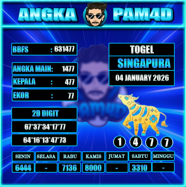 Prediksi togel PAM4D hari ini tanggal 04/01/2026 hadir untuk membantu pemain mendapatkan angka rekomendasi yang lebih akurat dan terarah. Setiap prediksi disusun berdasarkan pola data sebelumnya, analisa peluang, serta kombinasi angka yang sedang naik tren. Dengan pembaruan rutin setiap hari, pengguna bisa mendapatkan angka main, colok bebas, hingga kombinasi terbaik untuk berbagai pasaran populer.