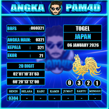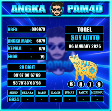 Prediksi togel PAM4D hari ini tanggal 06/01/2026 hadir untuk membantu pemain mendapatkan angka rekomendasi yang lebih akurat dan terarah. Setiap prediksi disusun berdasarkan pola data sebelumnya, analisa peluang, serta kombinasi angka yang sedang naik tren. Dengan pembaruan rutin setiap hari, pengguna bisa mendapatkan angka main, colok bebas, hingga kombinasi terbaik untuk berbagai pasaran populer.
