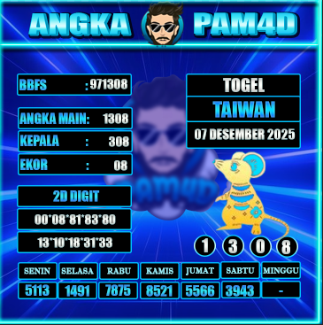 Prediksi togel PAM4D hari ini tanggal 07/12/2025 hadir untuk membantu pemain mendapatkan angka rekomendasi yang lebih akurat dan terarah. Setiap prediksi disusun berdasarkan pola data sebelumnya, analisa peluang, serta kombinasi angka yang sedang naik tren. Dengan pembaruan rutin setiap hari, pengguna bisa mendapatkan angka main, colok bebas, hingga kombinasi terbaik untuk berbagai pasaran populer.