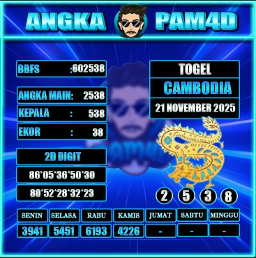 Prediksi togel PAM4D hari ini tanggal 21/11/2025 hadir untuk membantu pemain mendapatkan angka rekomendasi yang lebih akurat dan terarah. Setiap prediksi disusun berdasarkan pola data sebelumnya, analisa peluang, serta kombinasi angka yang sedang naik tren. Dengan pembaruan rutin setiap hari, pengguna bisa mendapatkan angka main, colok bebas, hingga kombinasi terbaik untuk berbagai pasaran populer.