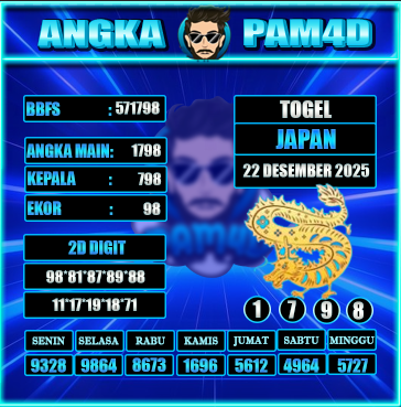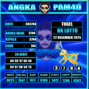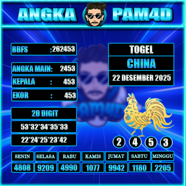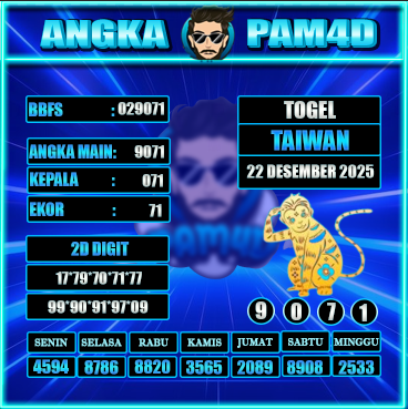 Prediksi togel PAM4D hari ini tanggal 22/12/2025 hadir untuk membantu pemain mendapatkan angka rekomendasi yang lebih akurat dan terarah. Setiap prediksi disusun berdasarkan pola data sebelumnya, analisa peluang, serta kombinasi angka yang sedang naik tren. Dengan pembaruan rutin setiap hari, pengguna bisa mendapatkan angka main, colok bebas, hingga kombinasi terbaik untuk berbagai pasaran populer.