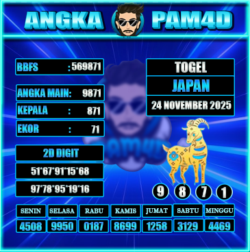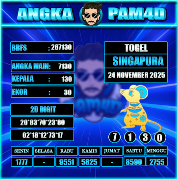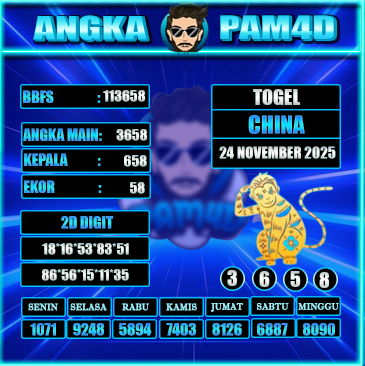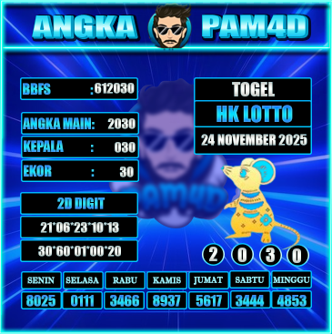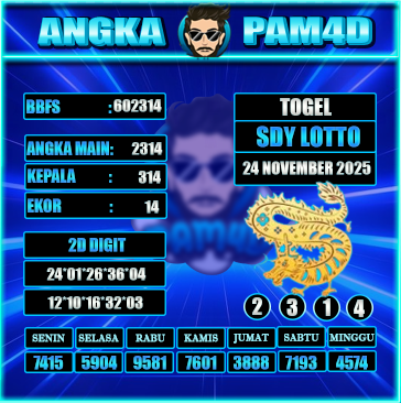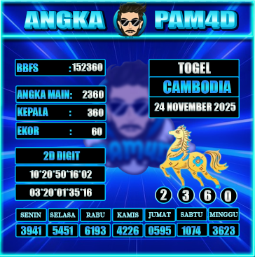 Prediksi togel PAM4D hari ini tanggal 24/11/2025 hadir untuk membantu pemain mendapatkan angka rekomendasi yang lebih akurat dan terarah. Setiap prediksi disusun berdasarkan pola data sebelumnya, analisa peluang, serta kombinasi angka yang sedang naik tren. Dengan pembaruan rutin setiap hari, pengguna bisa mendapatkan angka main, colok bebas, hingga kombinasi terbaik untuk berbagai pasaran populer.
