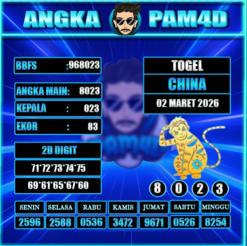 Prediksi PAM4D hari ini tanggal 02 Maret 2026 disusun untuk memberikan gambaran angka berdasarkan analisa data sebelumnya. Setiap pembahasan dirangkum dengan pendekatan pola tren, kombinasi angka, serta evaluasi peluang yang bersifat informatif dan terarah.