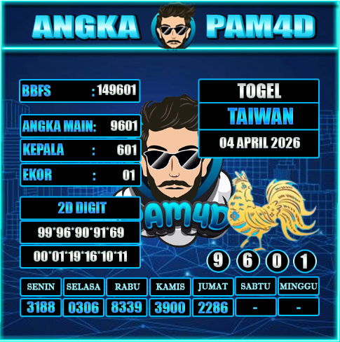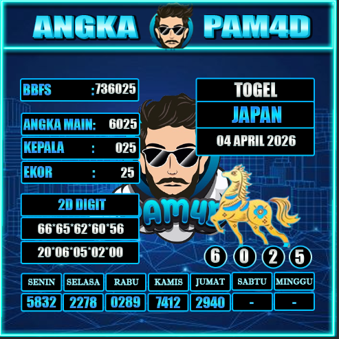 Berdasarkan data terkini, pola angka, dan analisis pergerakan sebelumnya, prediksi PAM4D 04 April 2026 hari ini menawarkan acuan yang cukup kuat. Pola konsisten ini dapat dijadikan strategi dalam menentukan angka pilihan.