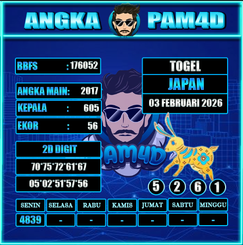 Prediksi PAM4D hari ini tanggal 03 Februari 2026 disusun untuk memberikan gambaran angka berdasarkan analisa data sebelumnya. Setiap pembahasan dirangkum dengan pendekatan pola tren, kombinasi angka, serta evaluasi peluang yang bersifat informatif dan terarah.