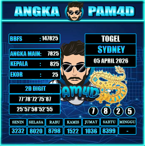 Prediksi PAM4D 05 April 2026 hari ini lengkap dengan analisa angka, pola terbaru, dan kombinasi 4D 3D 2D yang berpotensi muncul.