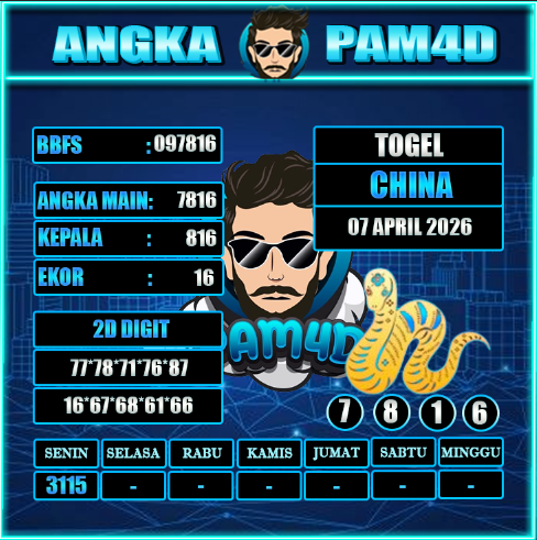 Berdasarkan data terkini, pola angka, dan analisis pergerakan sebelumnya, prediksi PAM4D 07 April 2026 hari ini menawarkan acuan yang cukup kuat. Pola konsisten ini dapat dijadikan strategi dalam menentukan angka pilihan.
