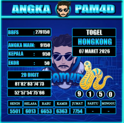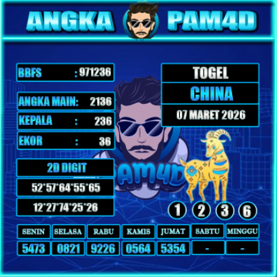 Prediksi PAM4D hari ini tanggal 07 Maret 2026 disusun untuk memberikan gambaran angka berdasarkan analisa data sebelumnya. Setiap pembahasan dirangkum dengan pendekatan pola tren, kombinasi angka, serta evaluasi peluang yang bersifat informatif dan terarah.