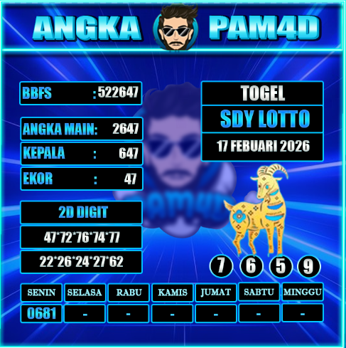 Prediksi PAM4D hari ini tanggal 17 Februari 2026 disusun untuk memberikan gambaran angka berdasarkan analisa data sebelumnya. Setiap pembahasan dirangkum dengan pendekatan pola tren, kombinasi angka, serta evaluasi peluang yang bersifat informatif dan terarah.