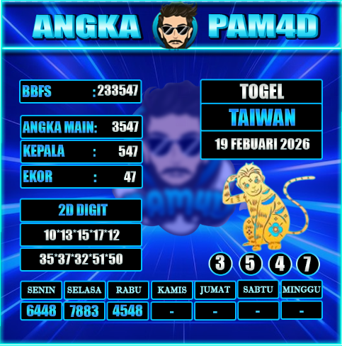 Prediksi PAM4D hari ini tanggal 19 Februari 2026 disusun untuk memberikan gambaran angka berdasarkan analisa data sebelumnya. Setiap pembahasan dirangkum dengan pendekatan pola tren, kombinasi angka, serta evaluasi peluang yang bersifat informatif dan terarah.