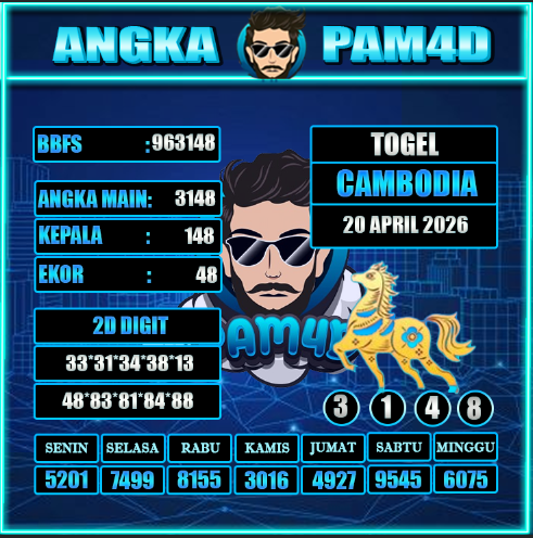 Berdasarkan data terkini, pola angka, dan analisis pergerakan sebelumnya, prediksi PAM4D 20 April 2026 hari ini menawarkan acuan yang cukup kuat. Pola konsisten ini dapat dijadikan strategi dalam menentukan angka pilihan.