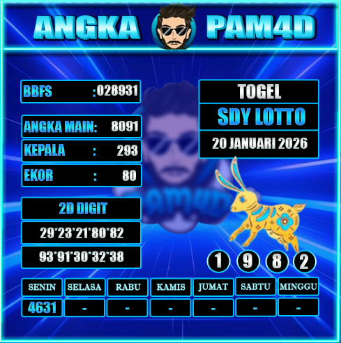 Prediksi PAM4D hari ini tanggal 20 Januari 2026 disusun untuk memberikan gambaran angka berdasarkan analisa data sebelumnya. Setiap pembahasan dirangkum dengan pendekatan pola tren, kombinasi angka, serta evaluasi peluang yang bersifat informatif dan terarah.