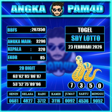 Prediksi PAM4Dย hari ini tanggalย 23 Februari 2026ย disusun untuk memberikan gambaran angka berdasarkan analisa data sebelumnya. Setiap pembahasan dirangkum dengan pendekatan pola tren, kombinasi angka, serta evaluasi peluang yang bersifat informatif dan terarah.