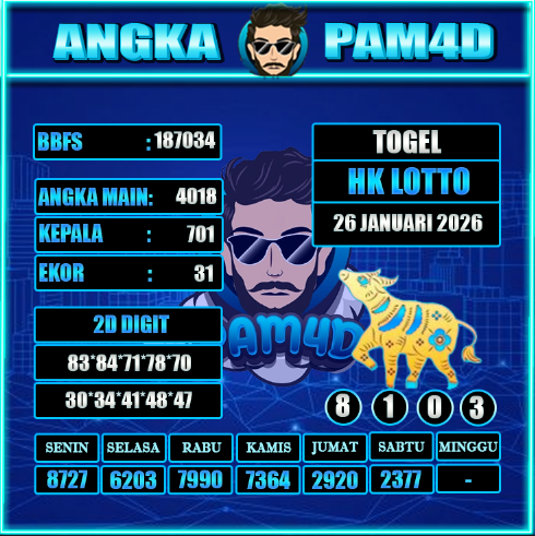 Prediksi PAM4D hari ini tanggal 26 Januari 2026 disusun untuk memberikan gambaran angka berdasarkan analisa data sebelumnya. Setiap pembahasan dirangkum dengan pendekatan pola tren, kombinasi angka, serta evaluasi peluang yang bersifat informatif dan terarah.